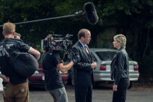 Rory Kinnear, playing the role of Des Collins, with Jodie Whittaker, playing one of the mothers